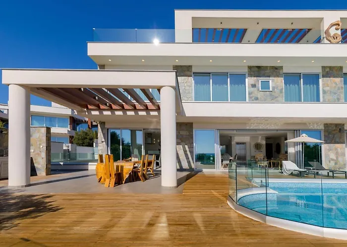 Dotata di una terrazza con vista sul mare, la Palace Of Mediterranean Beachfront Villa, si trova a circa 400 metri da Ammos Kambouri.